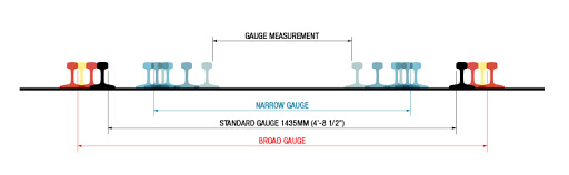 5’0” gauge, and still others opted for a more economical narrow-gauge network. Further complicating