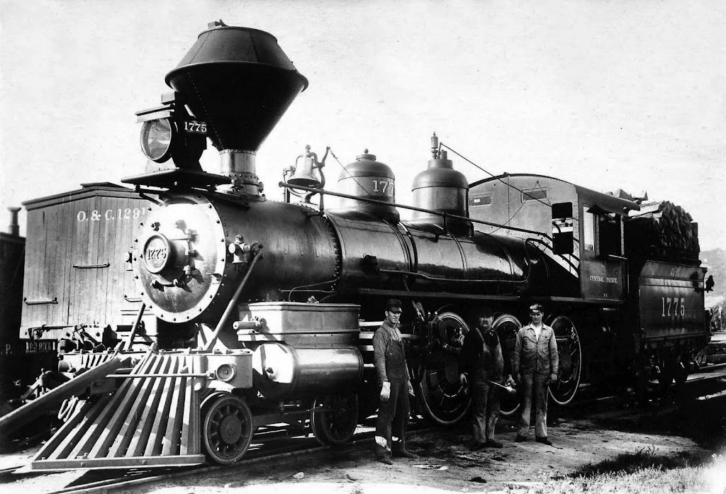 The steam engine itself was almost like a living being; Walt Whitman referred to it as a "fierce-throated beauty." Thick clouds of steam and smoke shot straight up into the sky, powering hundreds of visible parts clamoring in syncopation to propel the machine forward. Movement was rhythmic and musical: the stack snorted and huffed steam, and the whistle pierced the air in a high-pitch squeal or a low, bellowing moan. Each locomotive had its own ticks and quirks and, like ships, many were given unique names. The steam engine required fuel and water at fairly frequent intervals. Outside of any local or topographical considerations, supply stops are the most basic physical implication train.