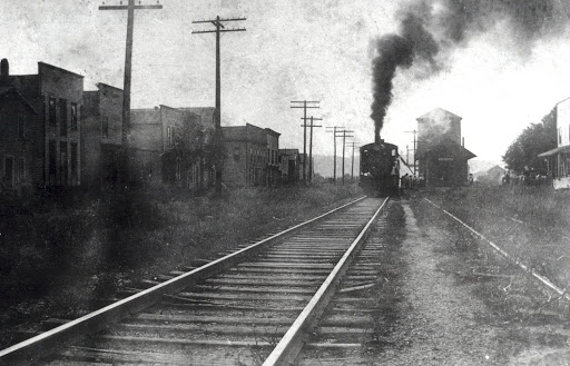 By charter, the railroad was granted 100' on each side of the line for the main tracks, side tracks, and operating area. Although the station was the center of the town, this 200' wide swath created a substantial separation through railroad towns that never occurred in earlier towns. Further dividing the city, the Associates' standard plat indicates a freight depot on one side of the tracks and a passenger depot on the other. More than simply shifting the central focus of the town, the two stations established an inherent bias to these towns: one side of the tracks caters to warehouses, light manufacturing, and other freight-oriented uses, and the other caters to shops, and traveler-oriented uses. Passengers were reluctant to cross the dangerous railroad right-of-way, so most commercial businesses preferred to locate on the station side of town. In other words, the “wrong side of the tracks” is built into the urban template through both function and physical separation. Lower income citizens congregated on the less welcoming, more industrialized, and sometimes-toxic side of town.