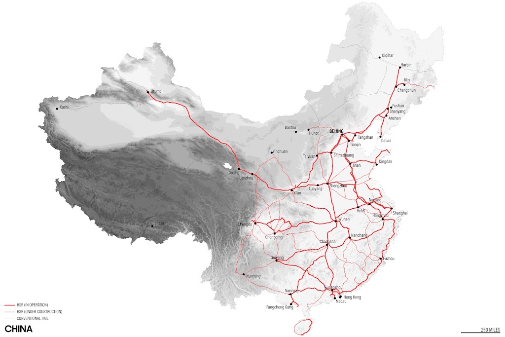 third in land area only to Russia and China. Given the HSR “sweet spot”