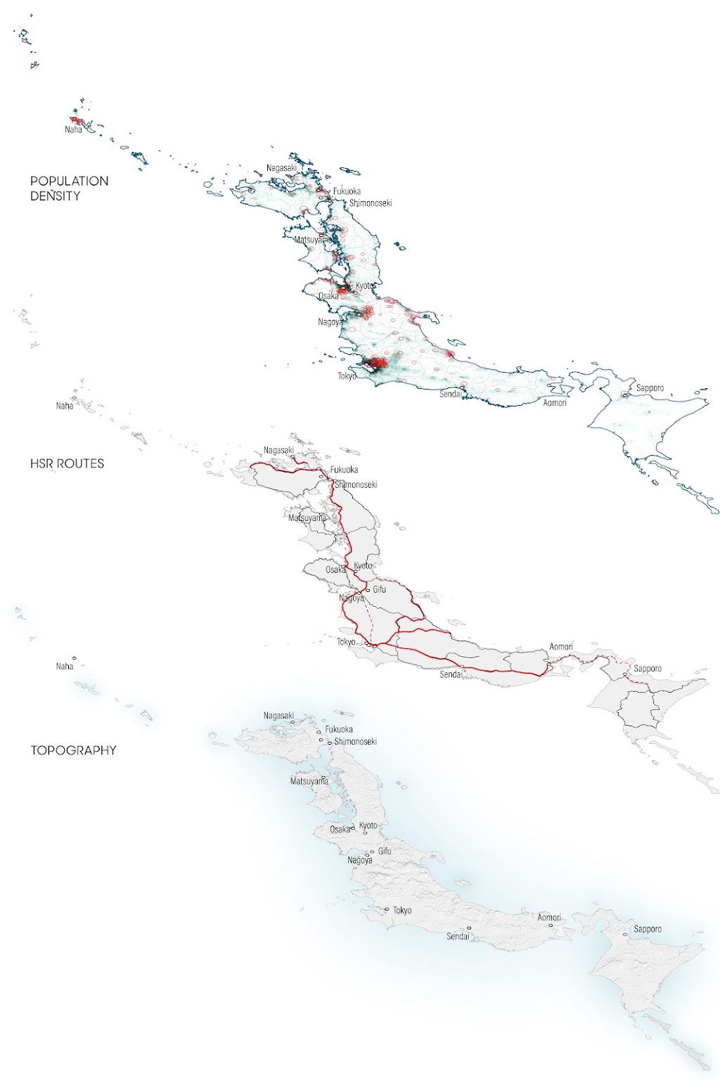 Despite these hurdles, the introduction of contemporary HSR networks do more than just reproduce the routes of the past: these high-speed networks establish a new operative scale for designers, conflating the traditional scale of the city and the region or even nation. In order to understand this emerging scale of design, we need to understand the historical development of both the conventional and high-speed rail networks in several cultural contexts. Below is a brief history of the development of conventional and high-speed rail networks in Japan, France, Germany, and China.